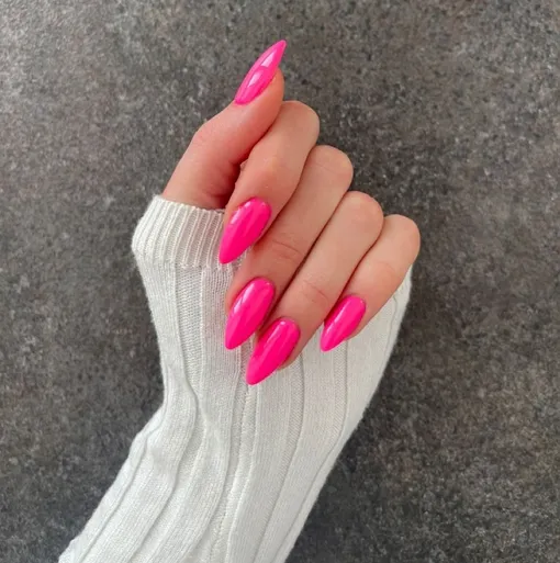 Фуксия в чистом виде — привет из 80-х, когда кислотные цвета царили и на подиуме, и на вечеринках. Осенью такой акцент на ногтях работает как антидепрессант: он поднимает настроение и разбавляет монохром тёплой одежды.
