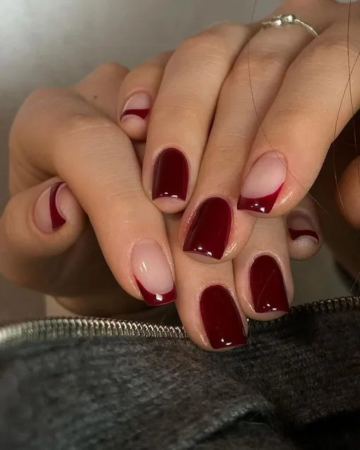 Красный маникюр делать можно, но и слишком простым ты его делать не хочешь? Тогда винный френч с однотонными ногтями будет в тему. Круто смотрится как в офисе, так и на вечеринке в пятницу!
