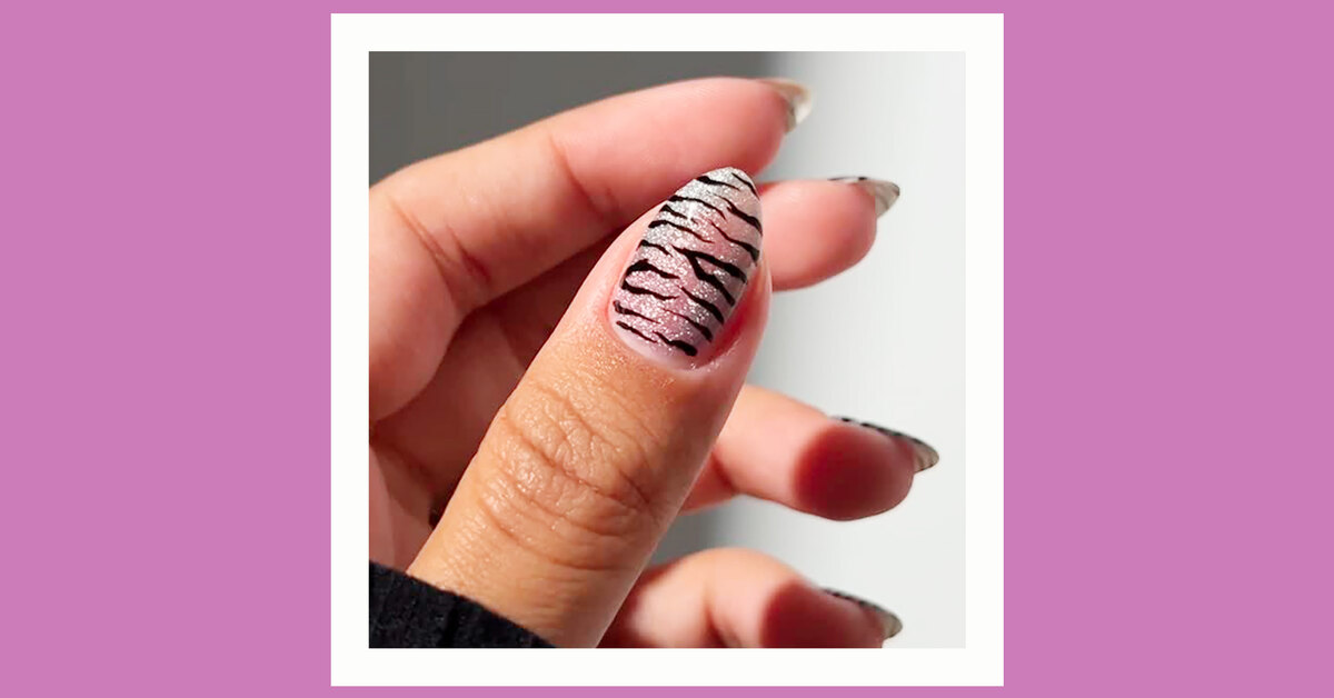 Зебра в софитах: как сделать этот сверкающий маникюр со звериным принтом без помощи мастера