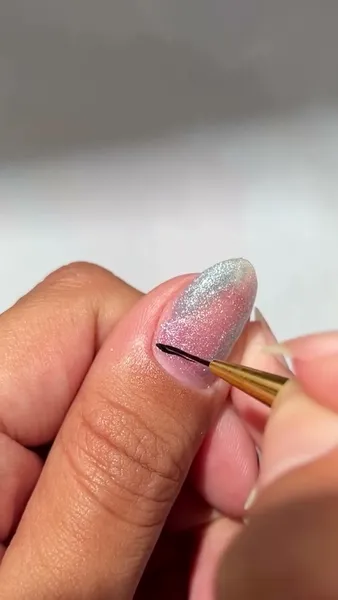 - Нанеси на ногти полупрозрачный магнитный лак в одном или нескольких оттенках пастели.