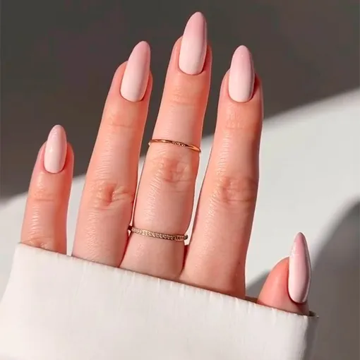 - Нанеси слой нежно-розового лака и дождись его высыхания.