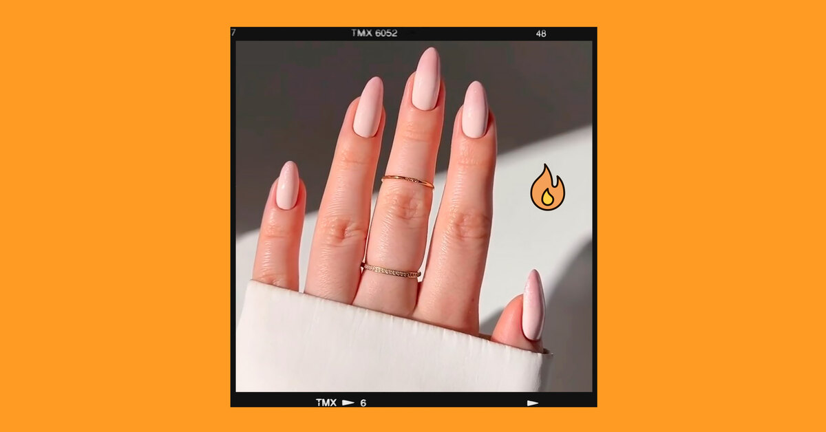 - Нанеси слой нежно-розового лака и дождись его высыхания.