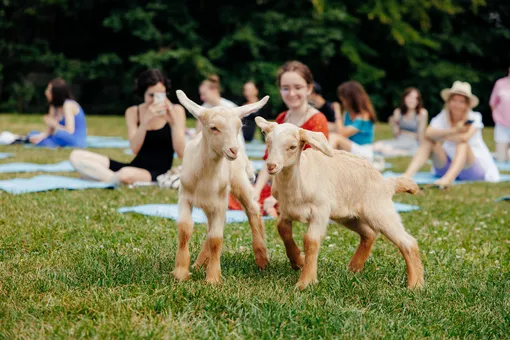 Кстати, участие в йоге с козочками абсолютно бесплатное. Главное — успеть предварительно зарегистрироваться, потому что количество мест ограничено.
