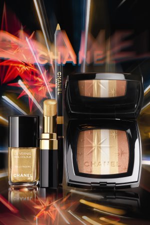 В коллекцию Las Vegas de Chanel вошли шелковистая пудра для лица Lucky Stripes, солнечный лак для ногтей Le Vernis Gold Fingers, помада Rouge Coco Shine Brilliant c эффектом прозрачного золота и карандаш для контура губ Le Crayon Lèvres Vegas Gold, подчеркивающий сияние улыбки.