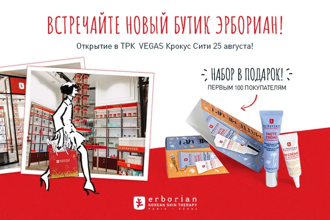 Раскрыть секреты совершенной кожи вместе с Erborian сможет каждый желающий 25 августа по адресу: 66-й км. МКАД, Красногорск, Московская обл., ТРК «VEGAS Крокус Сити»!»