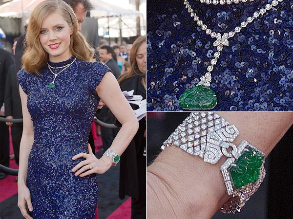 Ничуть не менее роскошным было и изумрудное ожерелье. Однако оно было практически незаметно на фоне платья от L'Wren Scott с высоким воротником. Нечего и говорить, что в тот вечер сотрудники службы безопасности ни на шаг не отходили от Эми Адамс. Сразу после церемонии она вручила им украшения, которые немедленно увезли на спецавтомобиле обратно в бутик.
