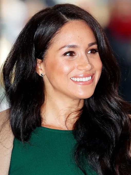 В начале 2020 года принц Гарри и Меган были официально отстранены от королевских обязанностей. Поэтому девушка стала себе больше позволять: скулы сильно выделены бронзером, насыщенные коричневые смоки и блестящие сливовые губы. Герцогиня оказалась очень довольной переменами в жизни счастлива, это видно!