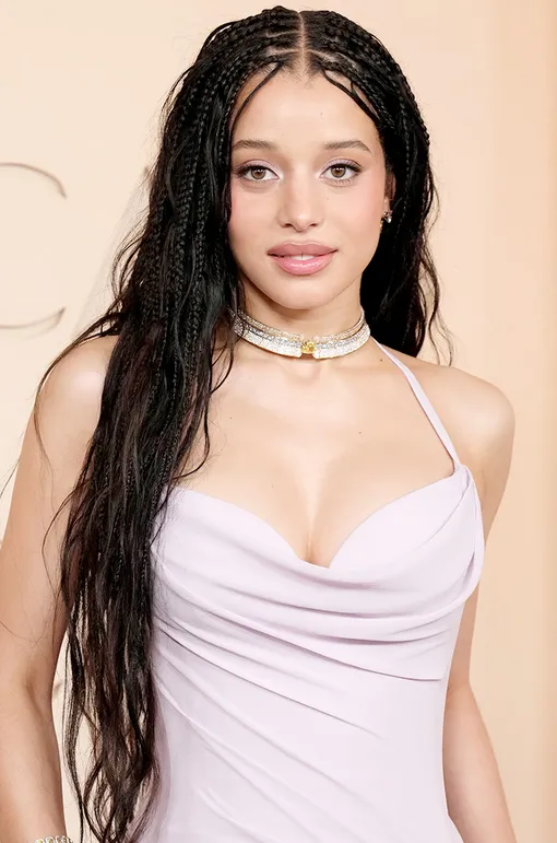 Чейз Инфинити добавила немного современного очарования ретротренду: смешала в одной прическе афрокосички и легкие пляжные локоны. Прическу создала известный стилист по волосам Кори Морено.