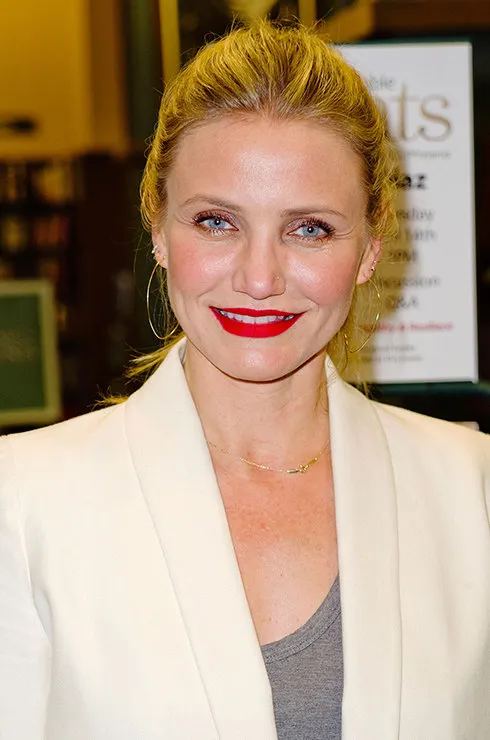 Сложно представить Кэмерон Диаз без её классических светлых волос. Сегодня актриса не считает нужным экспериментировать с цветом, разве что с его оттенками. Макияж девушка выбирает естественный и изредка делает акцент на губы при помощи коралловой помады.