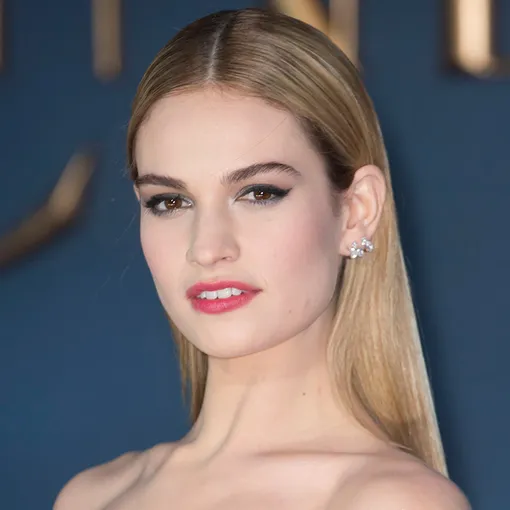 Премьера «Золушки» в Великобритании послужила для Лили Джеймс еще одним поводом к тому, чтобы продемонстрировать свою любовь к очаровательным девичьим образам в духе сыгранной ею принцессы. На этот раз она не побоялась ярких акцентов, хотя многие предыдущие ее выходы доказывают, что такие броские детали, как, например, яркая помада, — не ее фавориты.