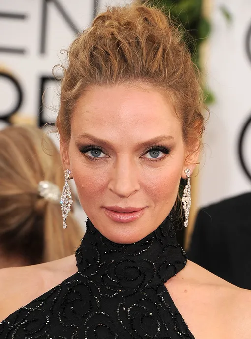 Муза Квентина Тарантино многим запомнилась не только своей игрой, но и необыкновенными чертами лица. Высокий лоб, острые скулы и миндалевидные глаза делают Умы Турман представительницей какой-нибудь инопланетной расы.