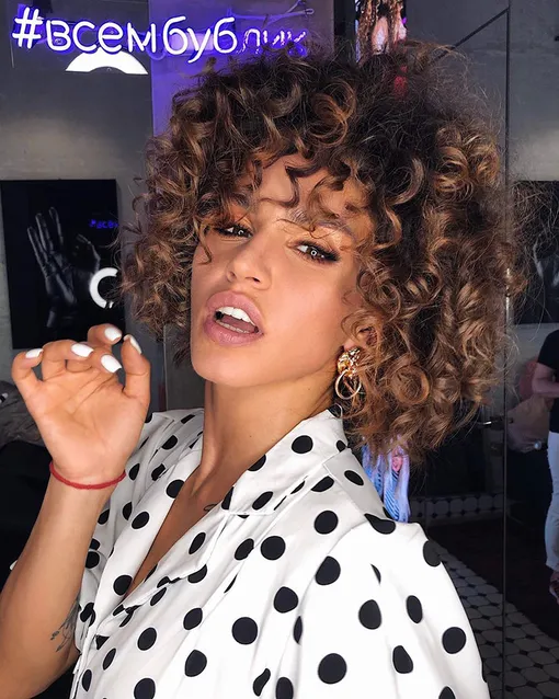 А вот и любимые мелкие кудри Юлии, с которыми ее сейчас часто видим. Ей они очень к лицу. Интересно, они настоящие?