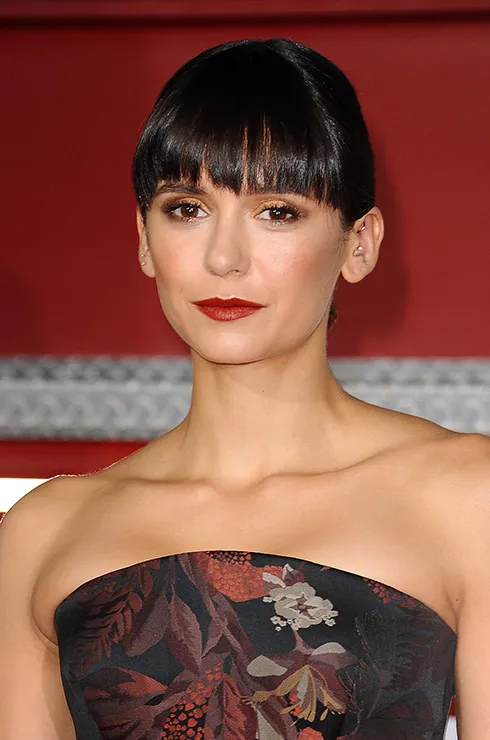 У звезды сериала «Дневники вампира» Нины Добрев от природы тонкие губы, поэтому она предпочитает более спокойные оттенки. Перед тем как нанести помаду, актриса щедро обводит контур бежевым карандашом, прибавляя пару миллиметров. Однако иногда Нина все же выходит на красную ковровую дорожку с теплой бордовой помадой, и ей она очень к лицу.
