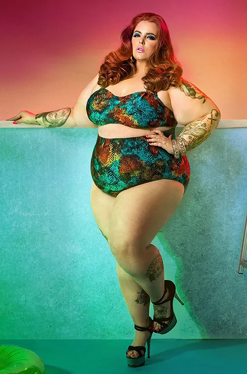 Тесс Холлидей – самая крупная модель plus-size в мире. Вес девушки составляет около 155 килограммов. При таком весе целлюлит, складки и растяжки - что называется, «must have». Но модные фотографы и редакторы глянца считают иначе и обильно ретушируют тело Тесс перед публикацией снимков. Так что тело модели в глянце и в реальной жизни – две большие разницы.