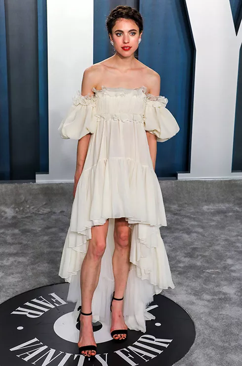 Героиня легендарного аромата Kenzo выбрала образ с отсылкой к древнегреческой культуре — чего стоит хотя бы прическа с плетением, которая так гармонирует с струящимся кремовым платьем. Из идеальной картины выбиваются ноги, которые очень хочется отвести в спа на массаж — такими «уставшими» они выглядят.