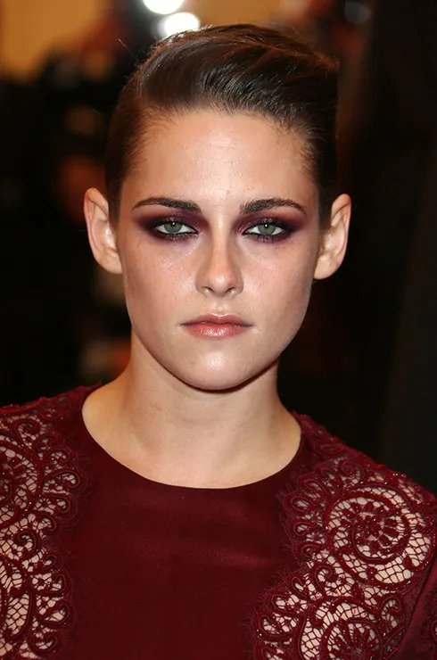 Напарница Терон по роли в «Белоснежке и охотнике», как видим, может дать фору исполнительнице злой королевы. Для этого понадобится пригладить волосы (как у Шарлиз), открыв лицо, нанести бледный тон и ярко выделить глаза. Кристен подвела нижнюю слизистую темным карандашом, а веки выделила тенями винного оттенка, растушевав их под «кошачий глаз». Осталось отрепетировать соответствующий взгляд, — и назойливое внимание окружающих больше тебя не побеспокоит.