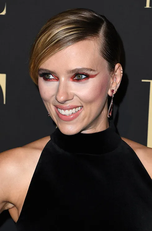 От нежной блондинки, исполняющей супергеройские роли, мы такого не ожидали, — однако Йоханссон это удалось. Даже улыбка не спасает такой макияж! Как бы ни подмигивала публике Скарлетт, металличские стрелки с длинными «хвостиками» и черная подводка придают ее взгляду холодное выражение. Макияж под стать стальному характеру!