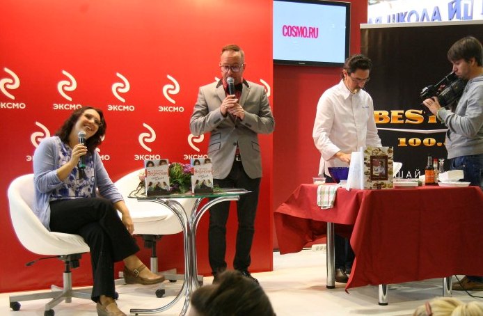 Татьяна представила свою новую книгу «Плохие девочки», а Эрик – книгу «Французская кухня на московский манер». Во время презентации Эрик приготовил тар-тар из лосося по рецепту из книги. «Мы использовали продукты, которые можно купить в московских магазинах, но вкус у получившихся блюд будет французским», — пообещал шеф-повар, отметив.