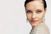 ОБРАЗ: Искрящиеся медные тени привлекают внимание к глазам. Аккуратно разделенные на пробор и убранные в пучок гладкие волосы делают образ строго-аристократичным, но при этом сексуальным.