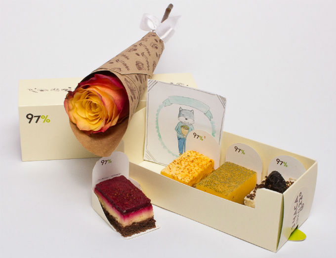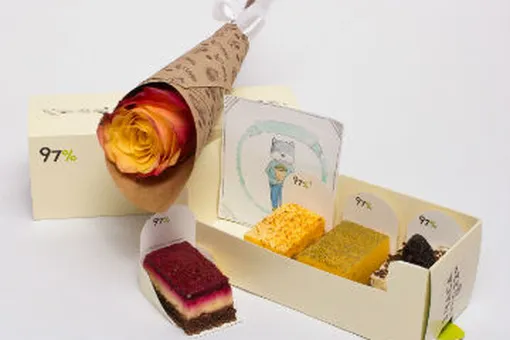 В День Всех Влюбленных Магазин мини-пирожных 97% предлагает выхватить любимых из плена серых офисных будней и произвести на них неизгладимое впечатление прямо в середине рабочего дня. Во имя этой цели 14 февраля набор из 4-х нежных пирожных сольется с цветами и мимимишной художественной открыткой в единый романтический сет, который расторопные купидоны доставят прямиком вашим возлюбленным! Узнать подробности о том, как заказать пирожные и сколько это стоит, можно здесь. И да восторжествует романтика!