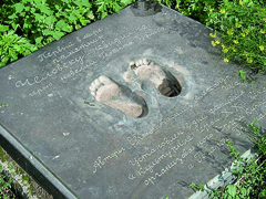Ты никогда не мечтала о парне-невидимке? Подумай, сколько плюсов! Идешь по городу с молодым человеком, а никто его не видит – все встречные джентльмены без опаски на тебя заглядываются и осыпают комплиментами. Отличный парень – всегда рядом и при этом не мозолит глаз! Подходящий невидимый экспонат ждет тебя у входа в библиотеку Белинского в Екатеринбурге. Ты увидишь только отпечатки его босых ног, но кто сказал, что его нельзя взять под руку, погладить по голове или почесать за ушком? Cоздатели памятника хотели оставить свой след в истории, как Герберт Уэллс, сочинивший роман о человеке-невидимке... Вот и оставили!