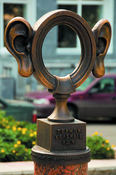 Читала «Охоту на овец»? Главный герой этого романа был неравнодушен к женским ушам. Если свои уши ты не считаешь достойными такого пристального внимания, можешь одолжить чужие – большие и соленые. Примерить их можно на Комсомольском проспекте в Перми, рядом с гостиницей «Прикамье». «Зачем увековечивать уши?» — недоумевают гости города, зато коренные пермяки прекрасно знают местную поговорку «Пермяк – соленые уши». По преданию, у работников соленого промысла Прикамья уши становились большими и красными – во всех губерниях пермская «прописка» считывалась именно по ушам. Это прозвище и было отлито в бронзе. А чтобы все сразу поняли, как поступать с этим странным памятником, напротив него недвусмысленно стоит бронзовая фигура фотографа. Редкий приезжий удержится от соблазна примерить уши – все хотят привезти домой свое веселое лопоухое фото.