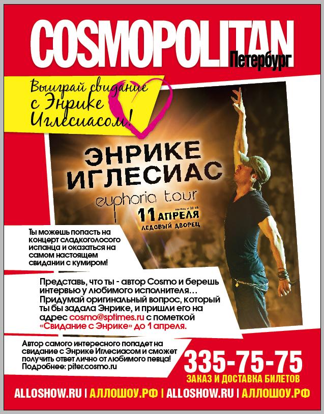 Представь, что ты — автор VOICE и берешь интервью у любимого исполнителя...Придумай оригинальный вопрос, который ты бы задала Энрике, и пришли его на адрес VOICE@sptimes.ru с пометкой «Свидание с Энрике» до 1 апреля.