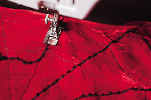 | Настрочить рисунок с изнанки под силу даже начинающей портнихе. | Для того чтобы паутина стала выпуклой, можно воспользоваться любой узкой тесьмой. |