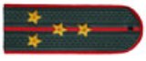 | Что на погонах: вытканный зигзаг и по две крупных звезды вдоль каждого погона. |