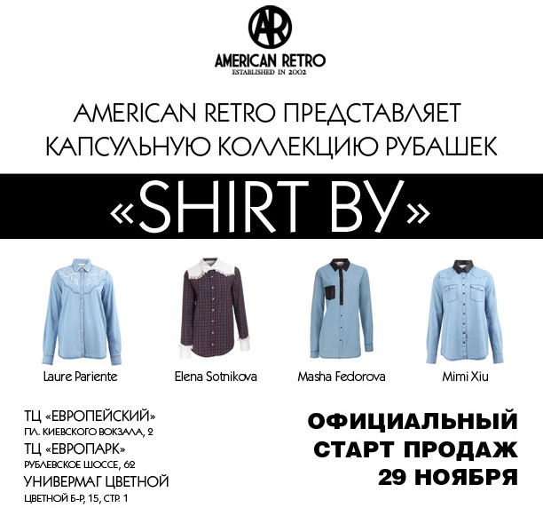 Специально к вечеринке в Москву приедут дизайнер марки Лор Париент и ее основатели — братья Дэвид и Грегори Париент. За неделю до вечеринки среди фолловеров American Retro Russia в Facebook (Социальная сеть признана экстремистской и запрещена на территории Российской Федерации) будут разыгрываться луки с рубашками, созданные Мирославой Думой, Лор Париент и Юлианной Карауловой (5sta family).