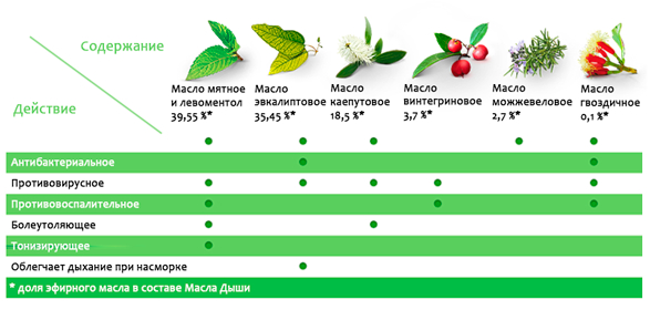Эфирные масла некоторых растений обладают противовирусными и антибактериальными свойствами. Именно такие масла входят в состав композиции .