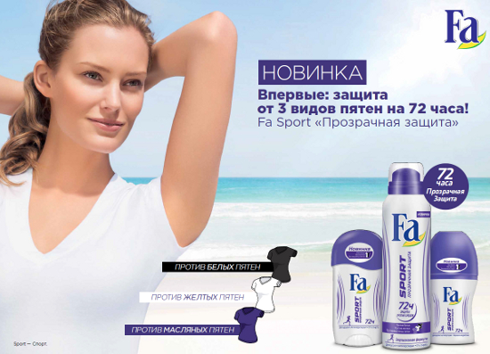 Инновационная формула Fa Sport Прозрачная защита подарит тебе надежную защиту в течение 72 часов, позаботится о коже и защитит одежду от пятен.