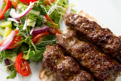 Лёгкие салаты, например, с ростками сои, угрём, молодым щавелем и необыкновенно сочные аппетитные блюда на мангале: шашлык из телятины, баранины, курицы, сёмги, скумбрии и ещё много прекрасных вкусных блюд ждут гостей ресторана!
