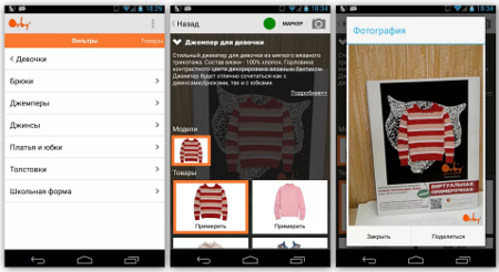 Выбирай из каталога детские куртки, платья, брюки и даже школьную форму и «переодевай» ребенка на экране одним лишь движением пальцев. Маркер в руках юного модника поможет тебе, а точнее, камере твоего телефона уследить за малышом. Нравится то, что получилось? Тогда отправляй снимок подруге на почту или на свою страничку во «ВКонтакте», просто коснувшись значка камеры на экране. За это ты не только будешь вознаграждена лайками и комментариями, но еще и получишь в подарок 15% скидку* на новую коллекцию в магазинах детской дизайнерской одежды Orby. Не хочешь откладывать покупку на потом? Коснувшись нижнего края экрана, ты сможешь посмотреть доступные размеры и оформить заказ с доставкой на дом через Интернет.