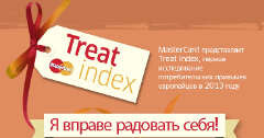 Сегодня MasterCard объявляет результаты первого исследования MasterCard Treat Index, которое показало, что более половины европейцев (59%) считают возможность совершать необязательные, но приятные покупки своим основополагающим правом. Опрос был проведен среди 12000 потребителей в восьми европейских странах: Великобритании, Франции, Германии, России, Турции, Италии, Бельгии и Швеции. Согласно отчету, несмотря на экономическую нестабильность последних лет, покупатели продолжают тратиться на личные приобретения, в среднем расходуя €51 на какую-нибудь приятную мелочь для себя не реже, чем раз в месяц. Вопреки экономическим трудностям региона, европейцы c неохотой отказываются от «маленьких радостей»: более чем один из пяти опрошенных утверждает, что продолжает расходовать средства на себя — даже зная, что их следует экономить. Еще один важный вывод исследования — более половины (50,5%) россиян хотели бы оплачивать такие небольшие покупки с помощью банковских карт; в России этот показатель оказался самым высоким среди европейских стран, которые приняли участие в опросе.