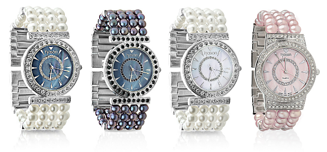 Жемчужная марка nasonpearl представляет первые фирменные часы с циферблатом из натурального перламутра трех цветов: розового, синего и белого.