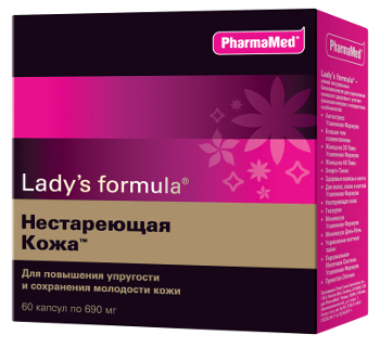 Один из таких препаратов — «Нестареющая кожа» Lady’s formula. Помимо всех необходимых витаминов и минералов, (цинка, кальция, селена...) комплекс содержит экстракты лекарственных растений — эффективный природный антиоксидант.