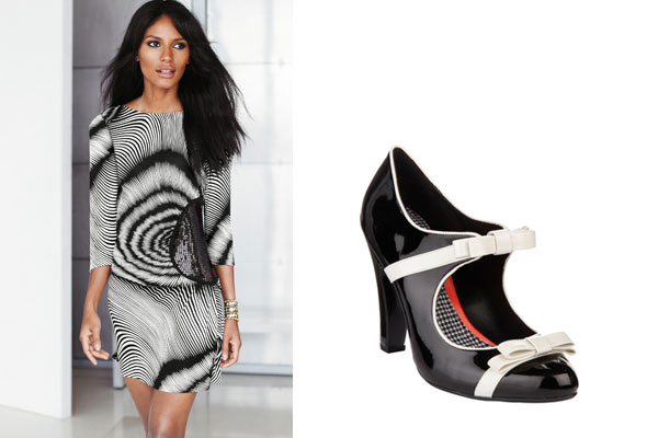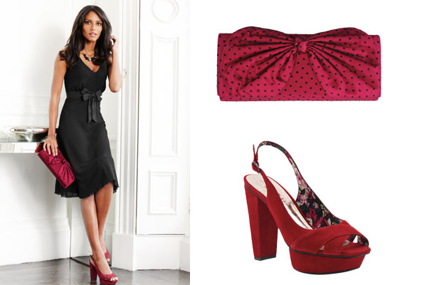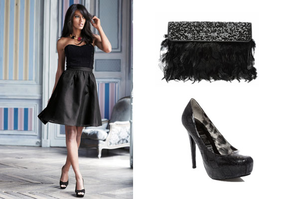 Прекрасным дополнением к маленькому черному платью станут твои обнаженные плечи. Поэтому если ты гордишься этой частью своей фигуры — выбирай платья с декольте или открытым корсетом. Как и в случае с первым образом от Next, соедини разные фактуры черного — это придаст нарядность образу.
