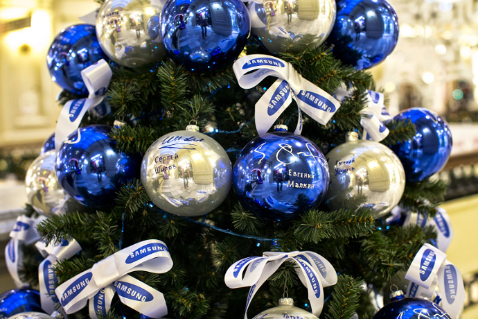 Новогодняя елка от спортсменов и Samsung — часть благотворительной акции торгового дома ГУМ. Все средства от продажи праздничных украшений пойдут на строительство в Москве первого детского хосписа под патронажем благотворительного фонда «Вера».