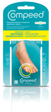 Рекомендованная розничная цена Compeed® Пластырь от врастающих мозолей на ногах средний (10 шт.) — 252 р.