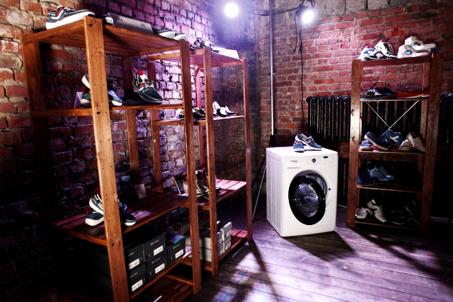 Оригинальное оформление судии White, где проходил показ коллекции, полностью отвечало концепции Washable: зал напоминал стильный Laundromat, американский формат прачечной самообслуживания. Модели новой коллекции были расставлены в концептуальных «витринах», которыми стали автоматические стиральные машины Whirlpool, установленные в зале. Все гости имели возможность примерить модели линии Washable и получить их в качестве подарка.