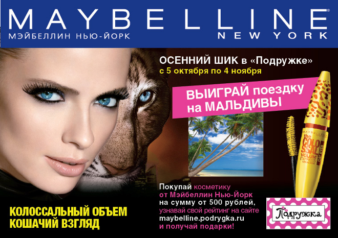 Сеть магазинов косметики и парфюмерии «Подружка» совместно с декоративной косметикой Maybelline New-York объявляют о начале Фестиваля «Осенний ШИК».