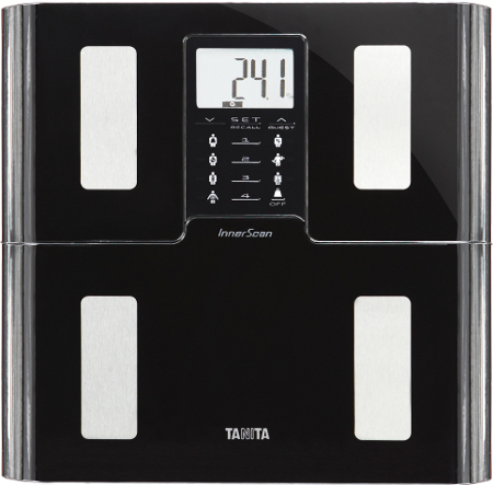 Отличный представитель этой категории устройств — анализатор жировой массы Tanita BC-583! Модель способна одновременно измерять вес, процентное содержание жира, воды, уровень внутреннего жира, костной и мышечной масс и уровень базального метаболизма. Да и еще — бонусом — твой биологический возраст!