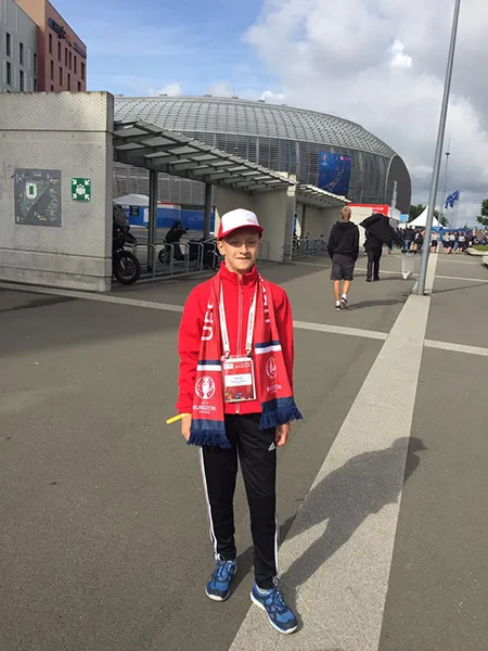 Москва, 15 июня 2016 года – Сегодня, 15 июня 2016, на стадионе «Пьер Моруа» в городе-спутнике Лилля Вильнёв-д’Аске состоялся матч Чемпионата Европы по футболу между сборными России и Словакии. Перед его началом официальный мяч чемпионата вынес на поле «Юный арбитр KIA», 11-летний правый фланговый защитник детско-юношеской спортивной школы олимпийского резерва «Химки» Михаил Андрюшков из Московской области.