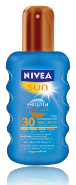 В нынешнем сезоне NIVEA приготовила для нас отличный сюрприз — спрей и лосьон . Обе новинки придутся как нельзя кстати любительницам получить ровный загар без вреда для кожи! Их формулы способствуют более быстрому проявлению загара и при этом совсем не содержат элементов автозагара. Более того, эти продукты водостойкие, они нежирные и приятны в применении.