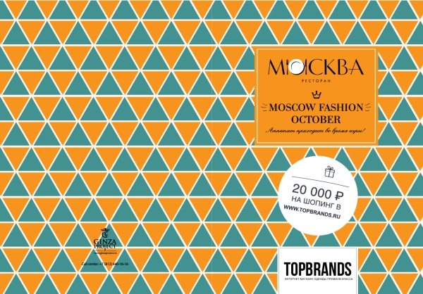 Хочешь получить 20 000 рублей на шопинг в TOPBRANDS? Участвуй в Moscow Fashion October – совместном проекте онлайн-бутика TOPBRANDS и GINZA project.