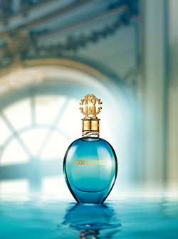 В новой версии аромата изгибы фирменного флакона Roberto Cavalli наполнились лазурным свечением. Золотая дизайнерская монограмма увенчана кольцом с изящным леопардовым принтом.