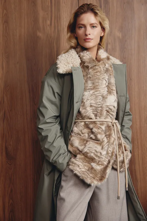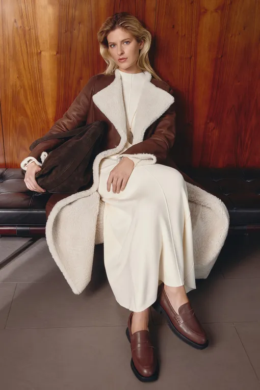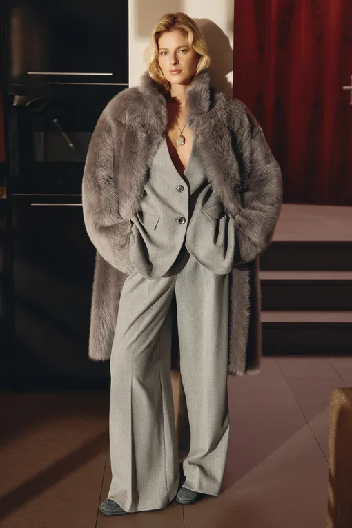 Поделимся небольшим стайлинг-трюком: не обязательно собирать весь образ под конкретное настроение — можно просто дорабатывать его характерными деталями. Например, меховую манишку (кстати, тренд сезона) набросить поверх трикотажного жилета, чтобы добавить в образ глубины и теплоты. Или в пару к стеганой куртке взять сапоги-слаучи — когда хочется чуть больше характера в образе, но важно сохранить и ощущение комфорта.