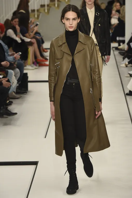 Этот кожаный тренч от Tod's — штука замечательная по своей красоте, но, к сожалению, малоприменимая. С одной стороны, он похож на удлиненную версию всеми любимой кожаной куртки, но не прячется так легко, как она, под зонтом в случае дождя. Ну а уж как настоящий тренч в непогоду его носить точно не рекомендуется. Куда в итоге надевать такую вещь? На светские мероприятия, разумеется.