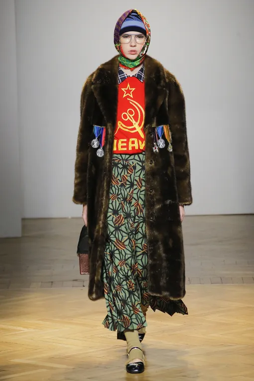 О том, что постсоветское наследие в тренде, не знает сейчас, наверное, только ленивый. Вот и Stella Jean решили обыграть эту тему, поместив на свитере подобие серпа и молота, а на шубе — изображения медалей. Свитер не берем, а вот о шубе можно задуматься!